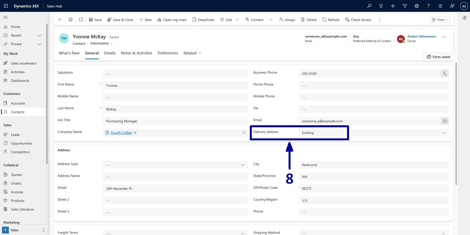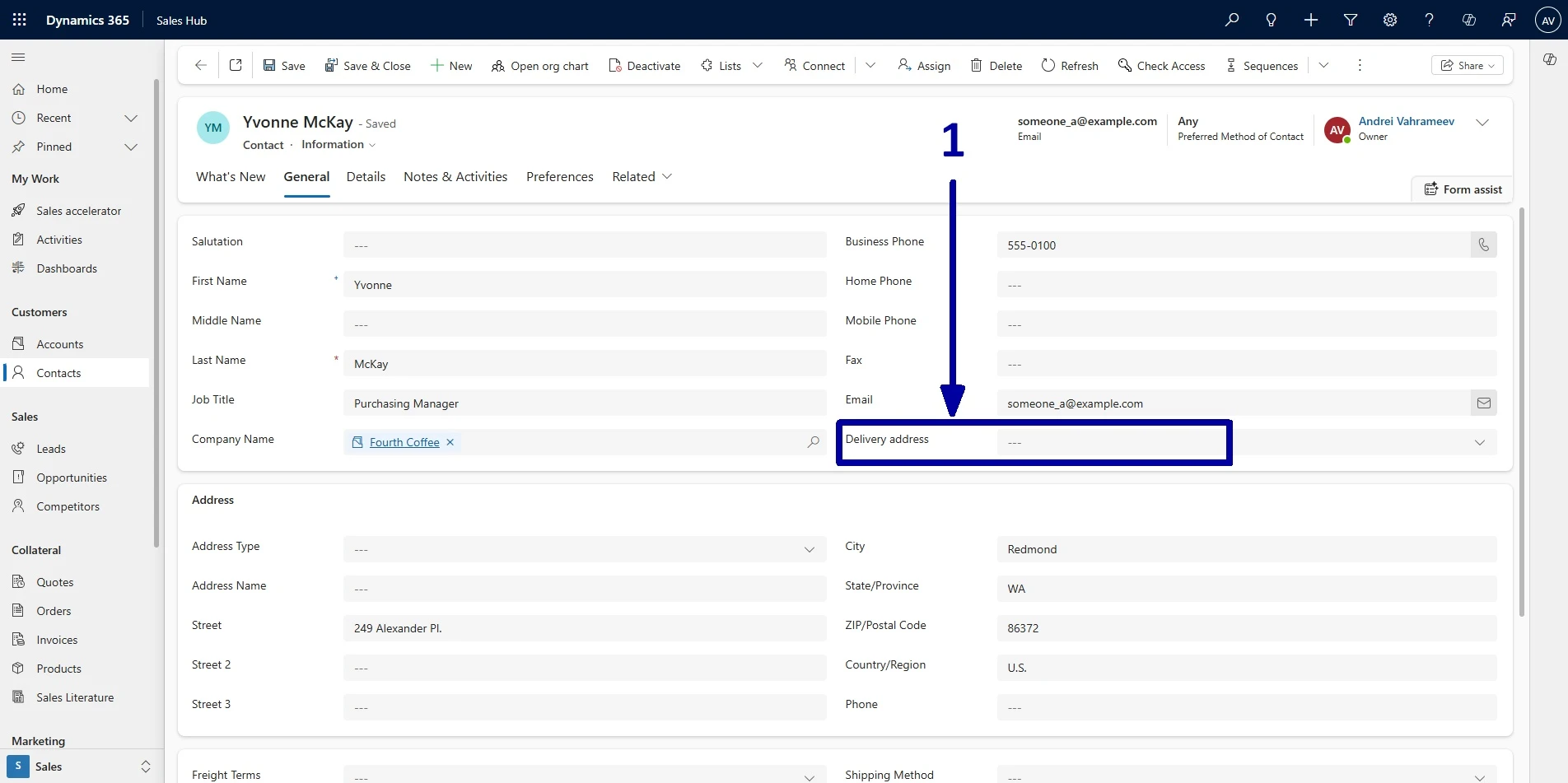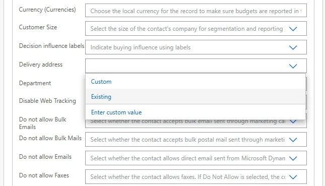 Our company has recently introduced a new delivery option that allows customers to select any delivery address, not just their primary one. To support this, we added a new field called “Delivery address” to the Contact table. It has two options: