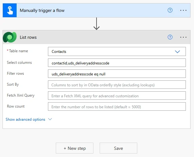 This means the flow will only find records where the Delivery address field is empty, since those are the ones we need to update.
