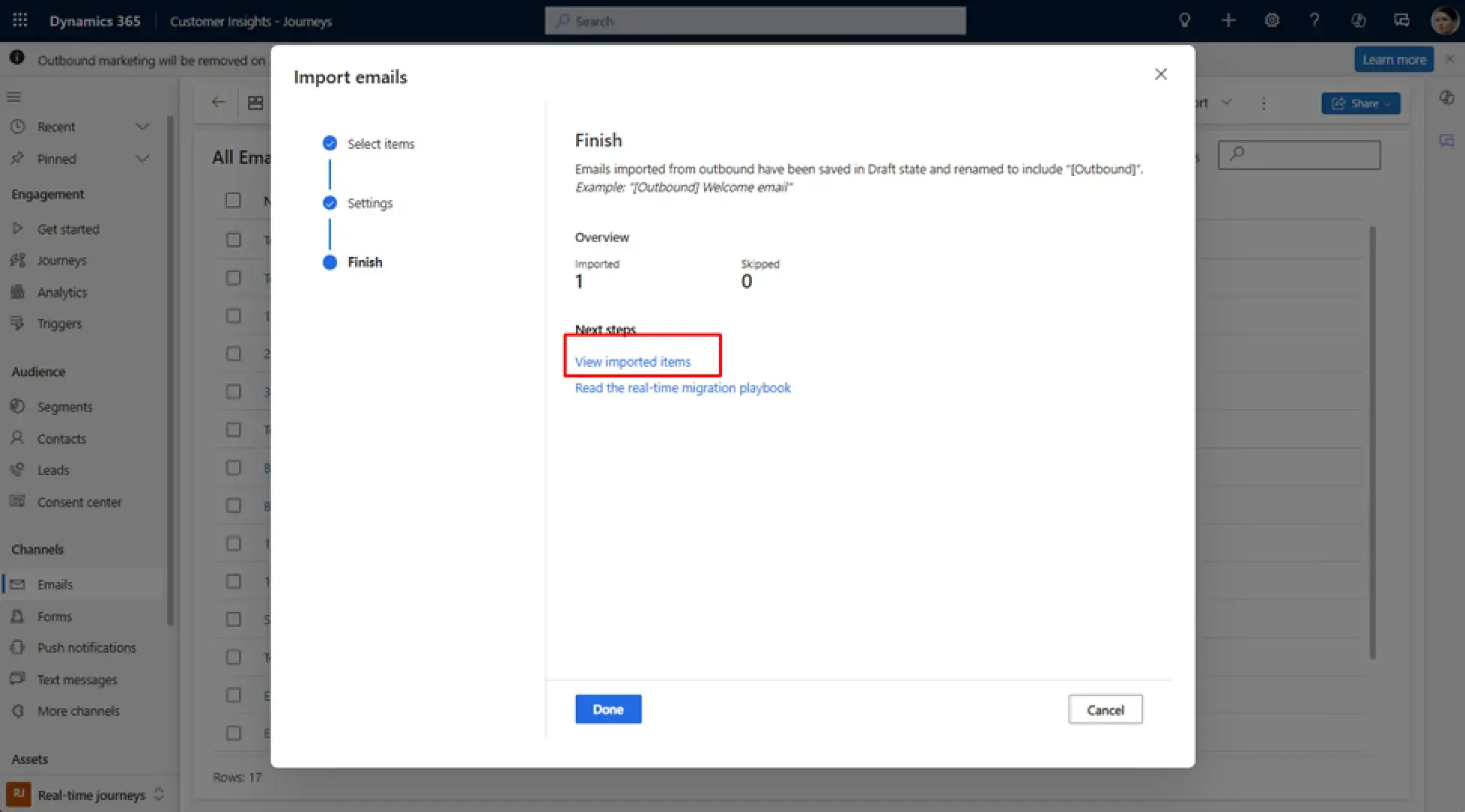 With the Outbound Marketing module deprecated by June 30, 2025, Dynamics 365 users are encouraged to begin migrating all their marketing setup components, including emails, to the Real-Time Marketing module.