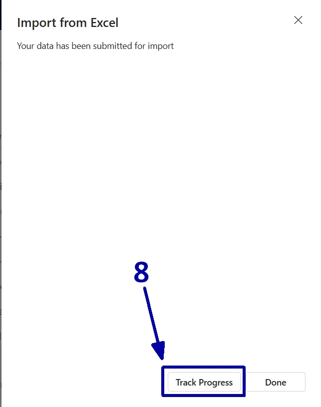 The next sidebar page will let you open (8) a new tab where you can monitor the import process.