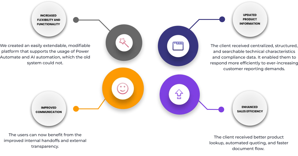 We successfully implemented a complex solution, delivering key functionality for the client in one convenient system, while also integrating Microsoft tools and the necessary integrations.